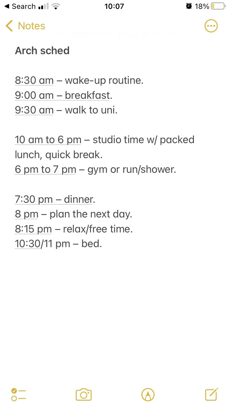 It is so easy for an architecture student to slip into a cycle of no sleep, bad diet and no exercise. Architecture schools have a profound influence on making you believe that you must work perilously to succeed. An architecture student's daily routine should be a healthy one. Remember you are allowed to rest, working 24/7 doesn’t mean you are being successful.