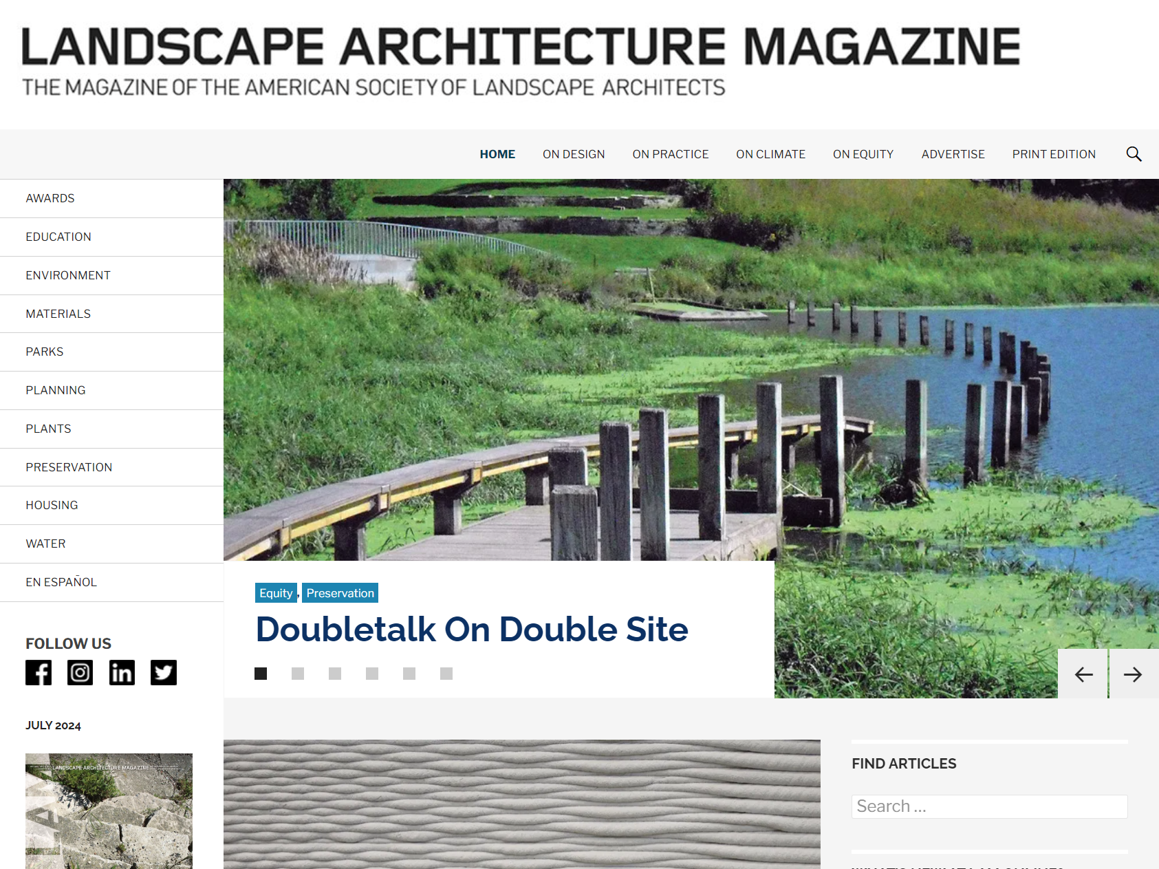 Landscape Architecture Magazine founded in 1910 is the official publication of the American Society of Landscape Architects. It provides comprehensive coverage of landscape architecture and environmental design.